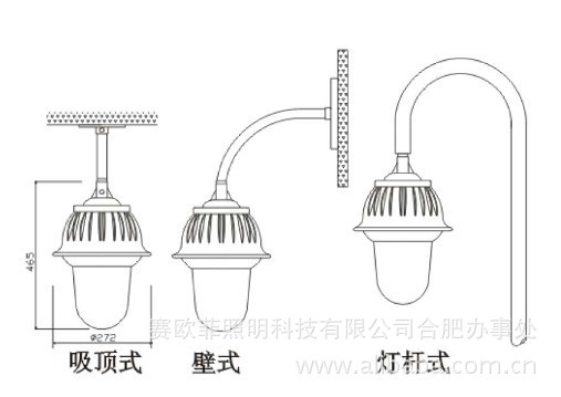- 重量轻,可选用吊杆式,壁挂式,吸顶式和灯杆式等多种安装方式,操作简单方便。
