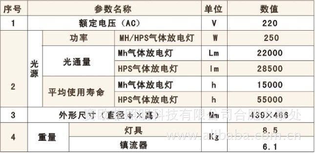 - 选用高效MH气体放点作光源,光效高,平均使用寿命在55000小时以上。