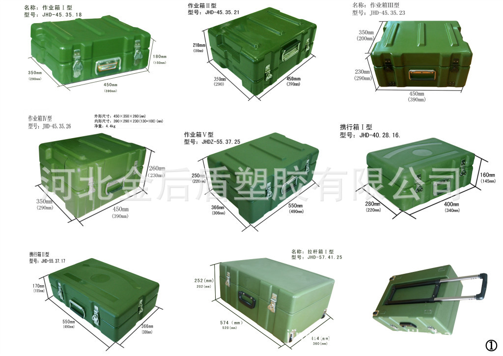 箱盖平面设计,美观大方。箱子在性能方面(如温度、振动、跌落、浸水、耐压等)均超过普通运输箱的极限。可在空投、海运、高低温环境、各种雨雪天气和潮湿环境中作业。体积小,重量轻,展收迅速,携行轻便。抗强冲击、缓冲减震、防水防潮、漂浮救生。便携拉杆箱采用特殊拉杆,便于携行。适合装备各类小型器材。