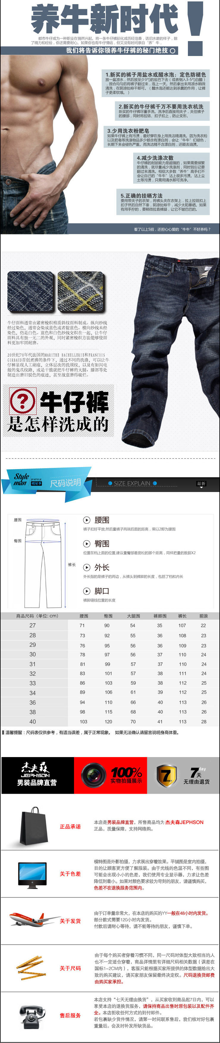 杰夫森 秋季新款 舒适剪裁 商务休闲 百搭纯棉男士牛仔裤J 0522