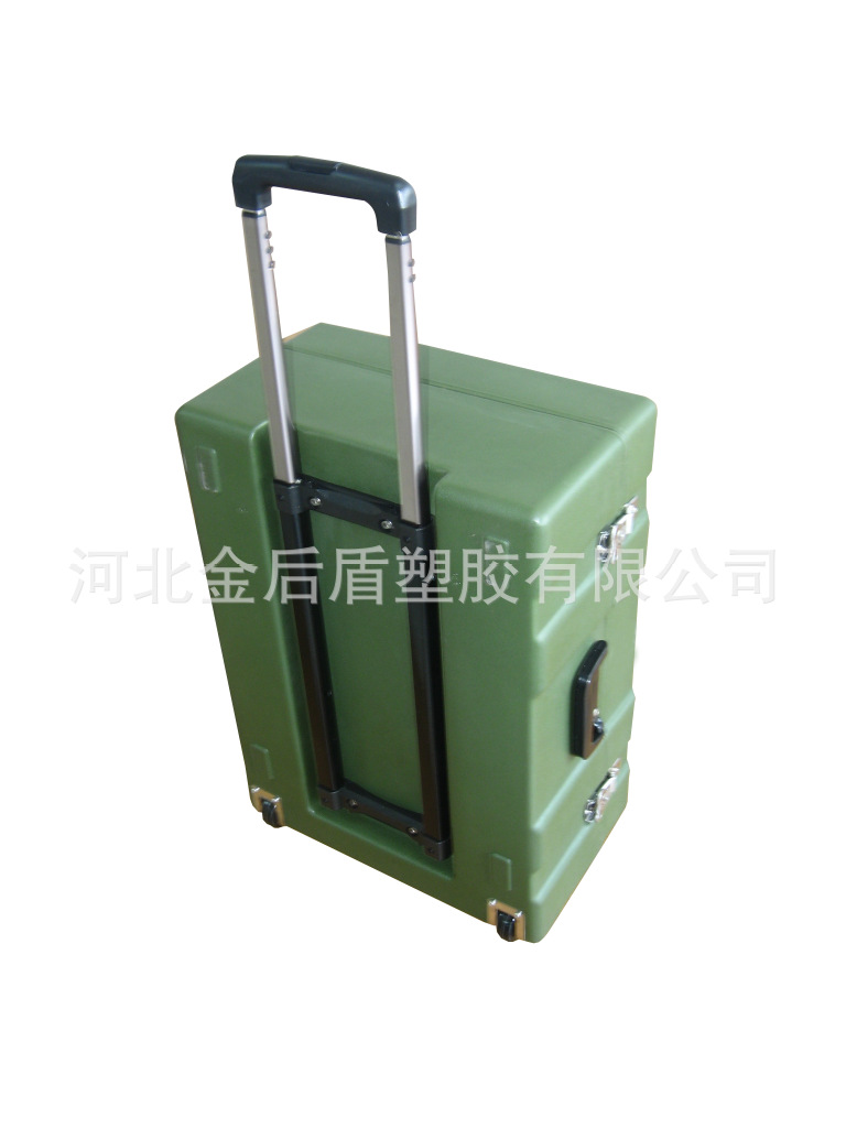 箱盖平面设计,美观大方。箱子在性能方面(如温度、振动、跌落、浸水、耐压等)均超过普通运输箱的极限。可在空投、海运、高低温环境、各种雨雪天气和潮湿环境中作业。体积小,重量轻,展收迅速,携行轻便。抗强冲击、缓冲减震、防水防潮、漂浮救生。便携拉杆箱采用特殊拉杆,便于携行。适合装备各类小型器材。
