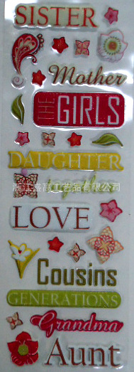 本公司DIY剪贴薄主要有:滴胶贴纸、植绒热转印贴纸、软磁胶贴、钻石纹身贴花边贴纸、纸品贴纸、闪粉贴纸,荧光贴纸,镭射贴纸,夜光贴纸,花卉贴纸,花辨贴纸,绒毛贴纸等;丝印各种贴纸产品;