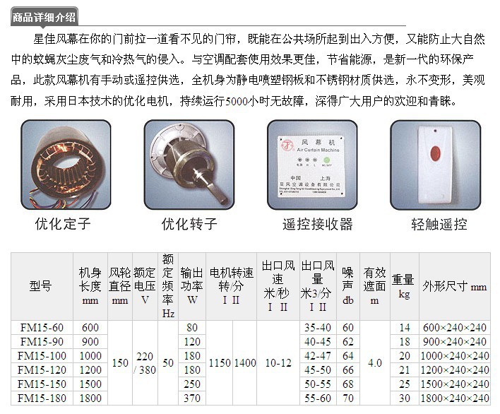 我公司建于1991年,位于上海奉贤区,泰日经济开发区,泰青路92号,相邻市区人民广场20公里,虹桥机场25公里,目前有配套快捷的高速公路。到泰日镇汽车站,向南100米即到本公司。 我公司是专业生产销售各种FM系列风幕机,有电热风幕机,遥控风幕机,全金属外壳风幕机,隔爆电机风幕机,水热风幕机和感应风幕机的专业厂家,拥有现代化机械设备、配套进口超声波、测试设备、综合钣金加工冲压流水线、叶轮焊接、叶轮动平衡设备、喷漆、喷塑流水线。凭借其深厚的工业基础、完善的设备配套、强大的科技实力和超前的创新能力,质量管理完全符合Q/TJYA1-2008标准。以质量、信誉、时间、服务等各方面来赢得中外客户对我们的信赖和支持。 本公司制造的风幕机在95年荣获上海市科技成果奖,在2004年被评选为全国风幕机产品质量公证十佳品牌。是理想的环保产品。产品畅销国内外,由上海、浙江、江苏、山西、重庆、北京、江西、新疆、韩国、印度、俄罗斯等,在国内外已建立了上万家客户,其中部分属市府重点实事工程及很有一定知名度企业,有独特的地位、享有崇高的声誉。