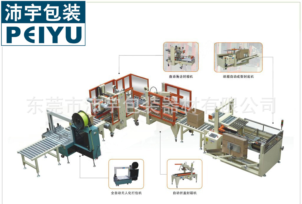 自动化包装设备产品主要有:自动封箱机,自动打包机,自动缠绕机,封切/收缩包装机,真空包装机,代理国外知名品牌手动打包工具(手提式打包机)及各种组立输送线。