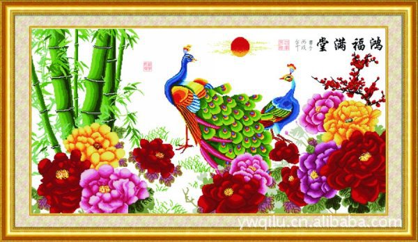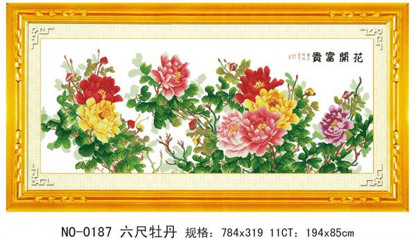 批发印在布上的十字绣 免数格免画格 六尺牡丹