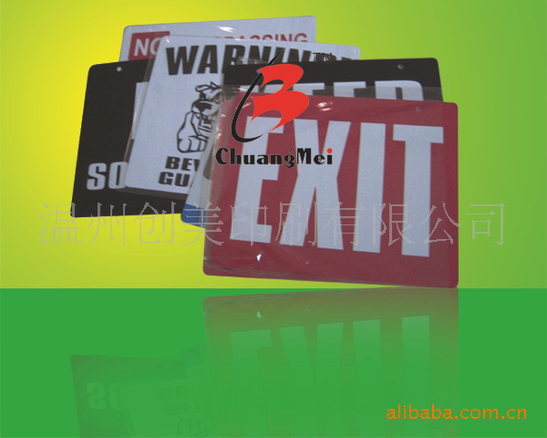 温州创美印刷有限公司专业生产、制作各类铜、铝、不锈钢、等金属腐蚀铭牌面板;滴胶、滴塑标牌铭牌、滴胶来料加工;丝印PVC、PC标牌、PVC标识牌,不干胶警示牌;PC面板,按键面板,有机玻璃丝印标牌、标识牌、有机玻璃丝印等。适用于各类电子、电器、数码产品,及机床设备。质量好,价格合理,欢迎来图来样订做。