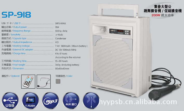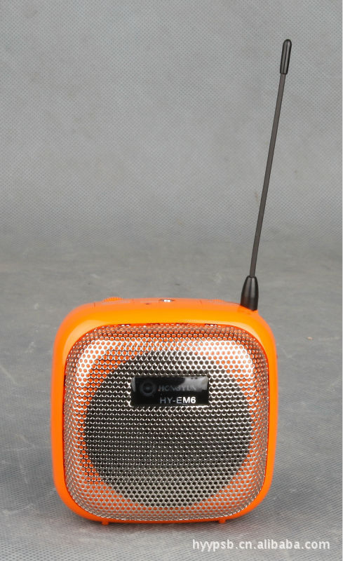 1、洪韵HY-EM6腰挂式扩音机集多功能数码播放器,TF卡、FM收音机/耳机放大器/麦克风扩音,是专业导游、晨练、户外休闲等场合使用。