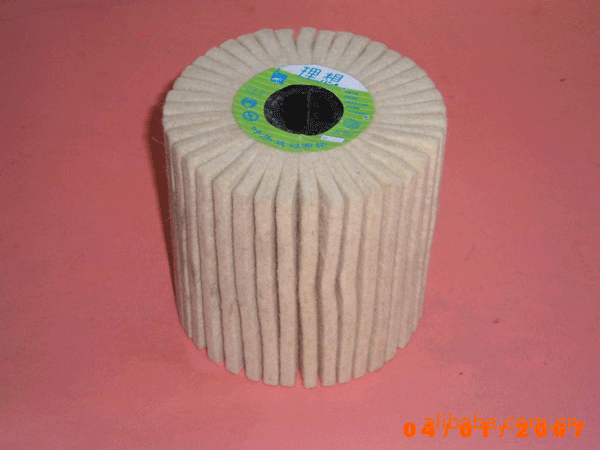 羊毛抛光轮简称羊毛轮,分卷式羊毛轮和纯羊毛轮两种,是常用抛光研磨工具 专用于抛光或修补擦伤之不同材料,如玻璃、陶瓷、石材、金属、塑料和珠宝等。 羊毛轮系玻璃抛光的必用轮,用于玻璃抛光的最后一道工序。它能够起到消痕,增亮的作用,也可以作为消除玻璃的浅表面划痕的组合抛光轮之一,与抛光粉冷却液一同使用。用于直边机,斜边机,异形斜边机、异形磨边机的抛光。 羊毛轮的材料根据硬度分类,不同硬度的羊毛轮加工不同的对象