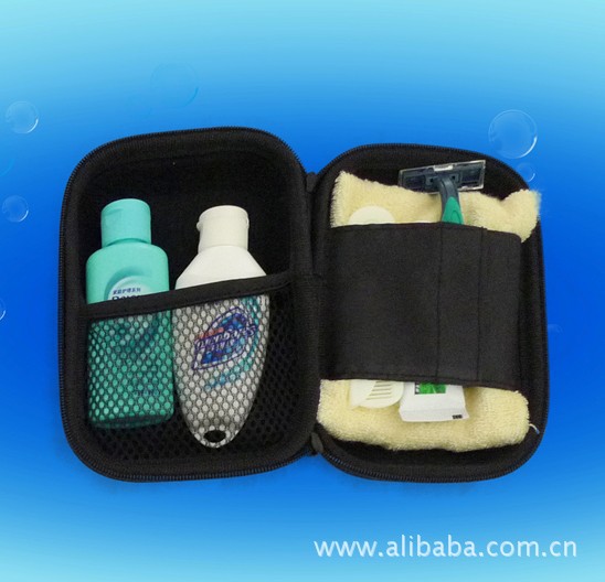 便携洗漱包原料为优质EVA,PU及天鹅绒布,采用压模成形的硬身设计,能够有效防水,防震,包身接合处做工细致精良。并设计有360度可旋转挂钩,方便携带。内部采用网袋和粘带设计隔层,能够充分利用内部空间,方便容纳您的洗漱用品或化妆用品。产品整体轻巧,便携,容量大,是您居家及外出的理想伙伴!