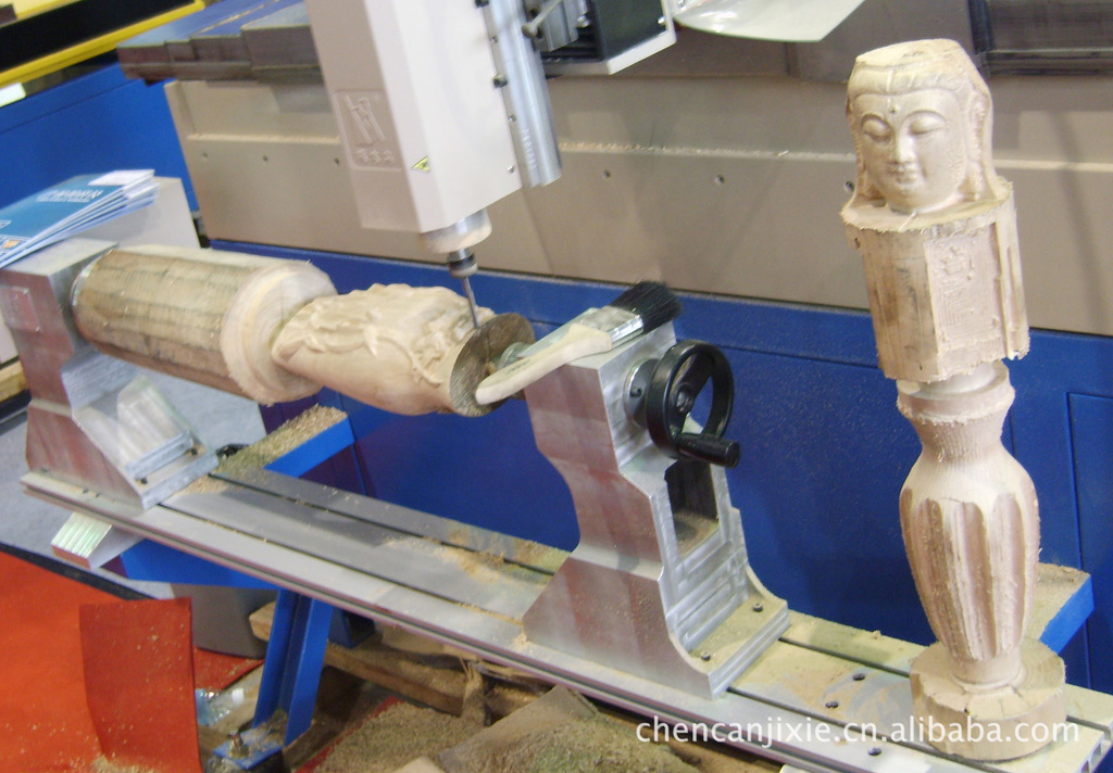 多功能雕刻机,既可以 当做普通台面雕刻机使用,又可以雕刻各种圆柱体,一机两用 。雕刻范围,加工圆柱的长度、直径,可以根据你的需要定制。样机加工圆柱的直径为20CM,直径为1米,这个可以根据您的需要定制