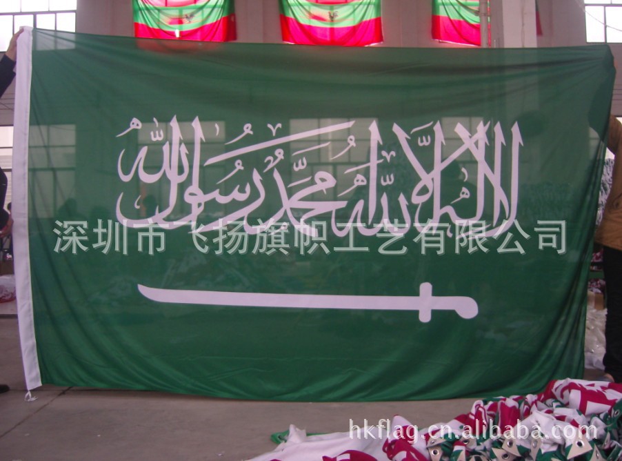 旗帜包装:每一面旗帜装一塑料袋(POLYBAG),然后再装出口外箱,送到机场,港口,再出口世界各地!