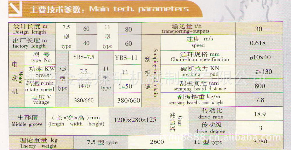 SGB280/7.5C,11型双链可弯曲刮板输送机主要用于一般中小型煤矿缓倾斜薄煤层和中厚煤层炮采工作面输送煤炭,如在中部槽上部增设挡板,增加其输送断面亦可在中间巷道内使用,特别是对井型小,产量不大,工作面长度不太长的小煤矿更为适合。在一般煤矿因地质条件限制而不宜使用其它类型输送机的情况下,亦可采用该机作为辅助之用。
