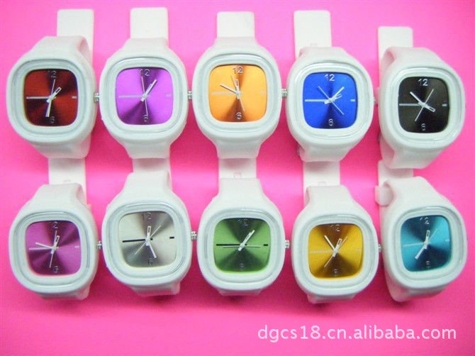 我司大量生产、批发硅胶方形果冻表成表、表头、塑胶表壳,颜色丰富。采用100%纯硅胶制作,无毒无味,手感柔软,摸起来比较接近人的皮肤。具有很好的弹性,无毒环保,防水、耐磨,耐高温等特点,颜色各异,时尚大方,可装配各种电子/机械表芯 。