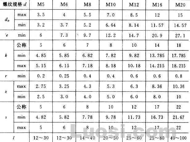 本公司所提供的GB85方头长圆柱端紧定螺钉尺寸大小参数如下: