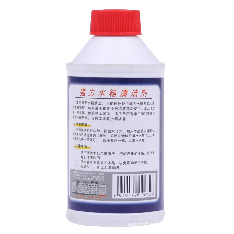关闭发动机并冷却,排出水箱水。加入本品后加满清水,启动发动机并运转约10分钟;关闭发动机后排出水箱污水,再用清水洗净水箱即可。一般小车用一瓶,大车用两瓶。