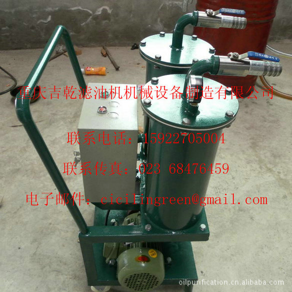 该液压油过滤机,液压油过滤设备,过滤液压油机械杂质设有两级过滤、轻便灵活、操作方便、超低价格、不用滤纸、不污染场地