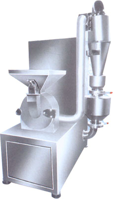 本机利用固定与与活动击锤间的相对运动,使物料在机腔内被冲击而快速获得。粉碎后的物料经旋转离心力的作用,自动进入捕集袋,粉尘由吸尘箱经布袋过滤回收。