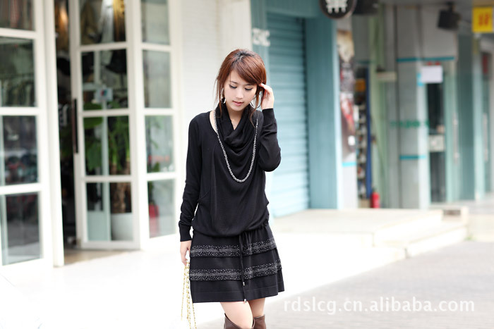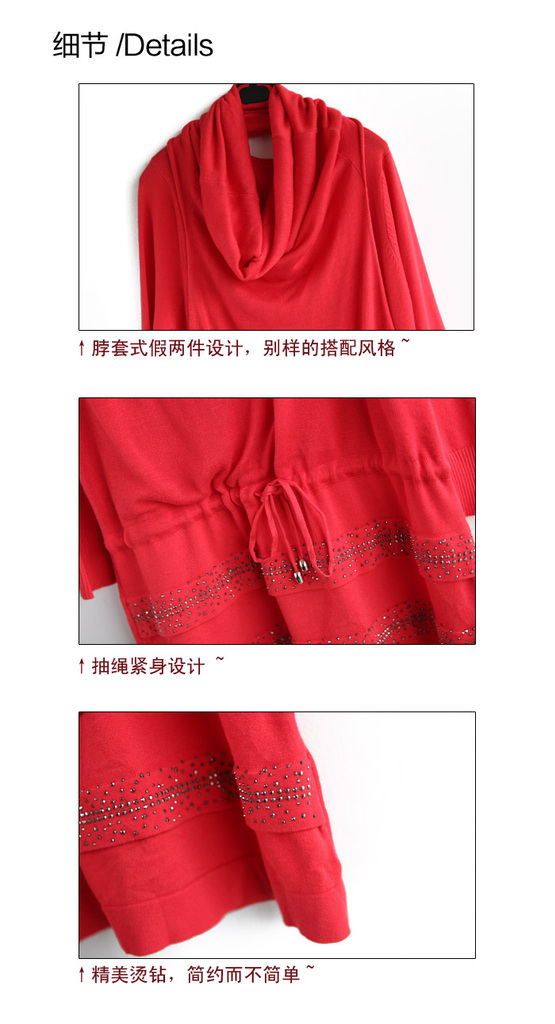 * 脖套式假两件针织连衣裙~(裙摆有烫钻装饰)