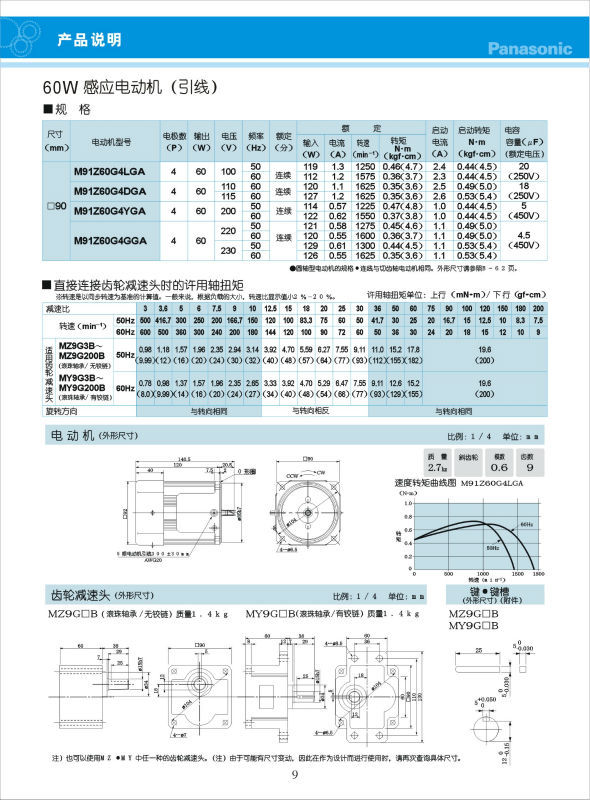 供应松下60W感应电机M91Z60G4GGA,60W单相电机
