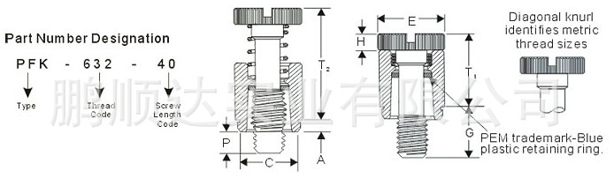 供应PEM宾姆面板紧固件PFK系列压铆弹簧螺钉,松不脱,PFK-440-40产品简介: 用于PC板的紧固件。PFK-632-62,PFK-M3-84