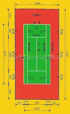 (2)单打场地的长度为23.77m,宽度为8.23m。