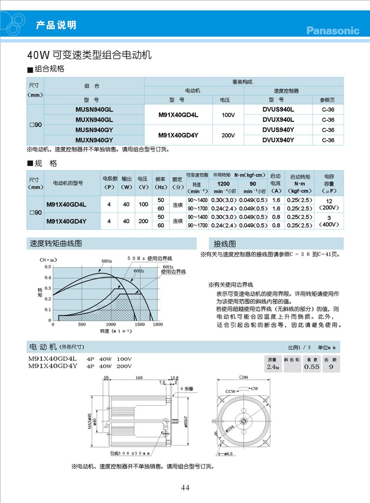 供应松下40W数显套装马达电机,MUXN940GW,数显套装马达