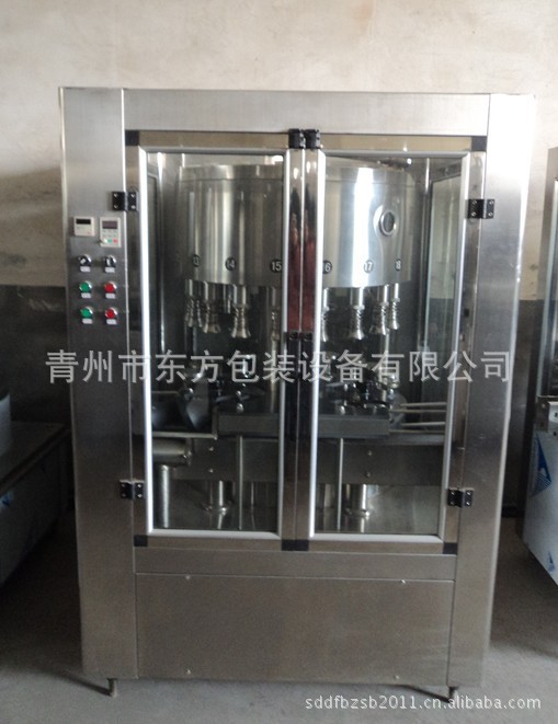 该类灌装机采用等容式灌装,广泛用于不含酒气的白酒、黄酒、饮料、调料、液体药品及其他液体的灌装,灌装容量范围大,适用瓶型多。