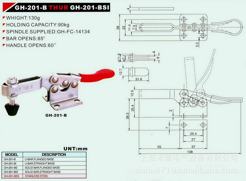 CH-201-B AND CH-201-BSI手动快速夹,肘夹
