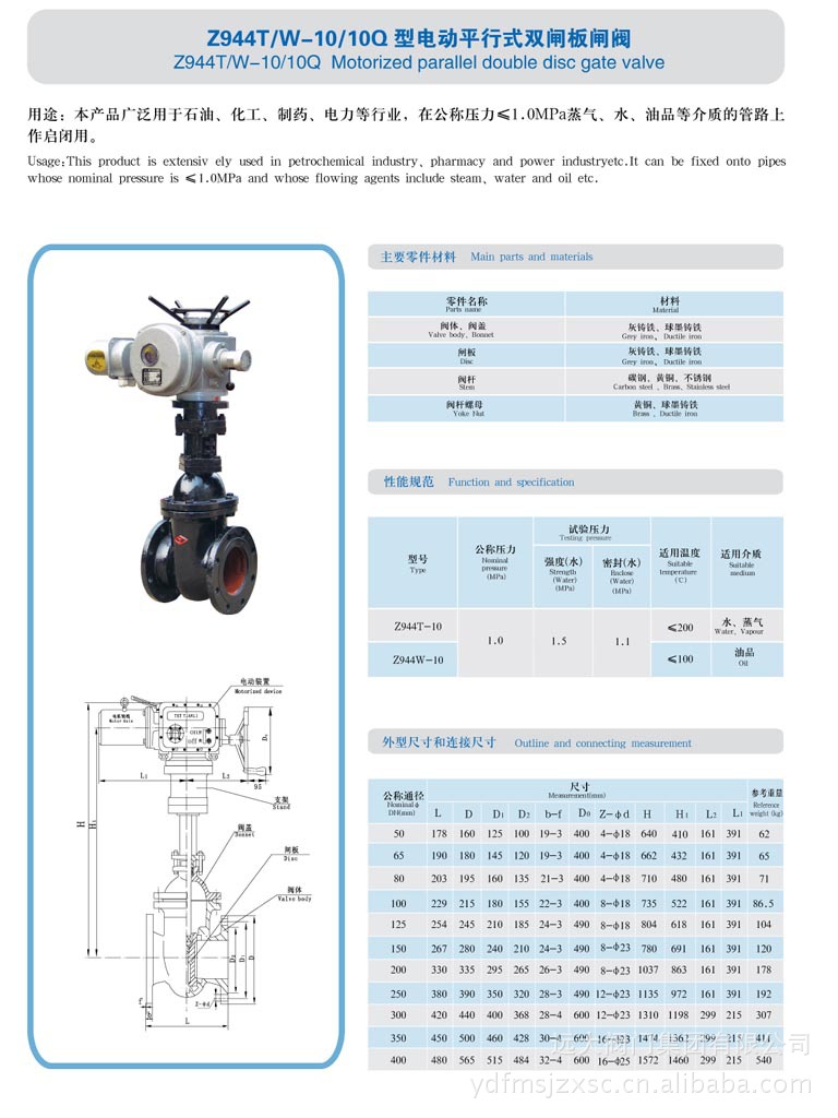 远大阀门 厂家直销 Z944T/W-10/10Q型电动平行式双闸板闸阀