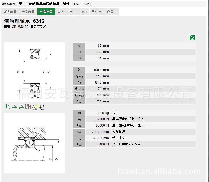 产品参数图片来自FAG官网,客户咨询前请核实型号、内径、外径、厚度等。 |