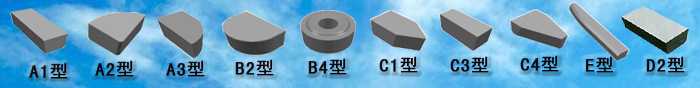 铣刀片的主要牌号有:YT14 YT15 YT5 YW1 YW2 YW3 YT05 YT30 YS25 YG3 YG3X YG6 YG6X YG6A YG8 YG8N YD201 YC201 YM201 YS8 YS30 YC35 YC45 YD15 YS2T YT726 YT767 YG813(牌号甚多 未能一一列出)。