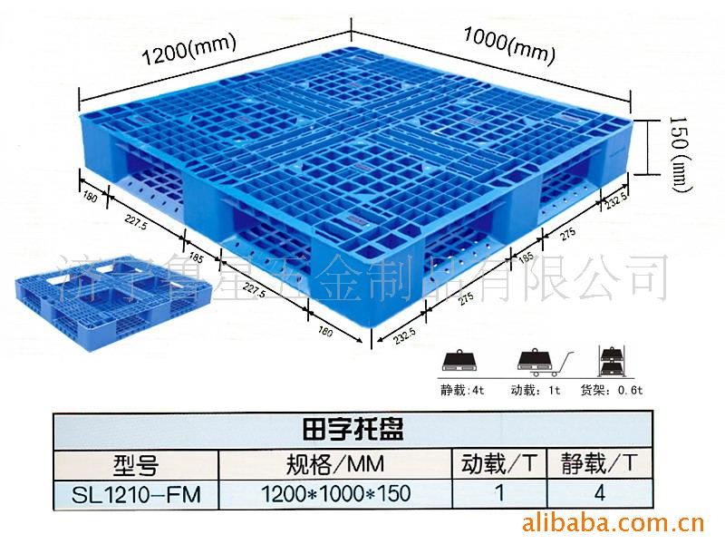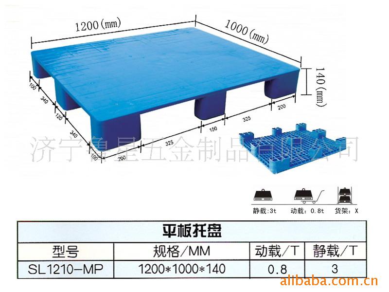 塑料托盘是使用PE\\PP等热塑性塑料,加上一些改善性能的添加剂,通过注塑、吹塑等工艺加工而成的。 随着对生产条件、仓储条件、过程控制、品质管理的要求不断提高,由于木托盘在卫生状况及规范生产上无法克服的局限性,塑料托盘开始出现,并很快占据了一席之地。目前已广泛应用于机械、电子、食品、医药、服装等行业。与木质托盘相比,塑料托盘整体性好,卫生洁净,易于冲洗消毒,在使用中具有质轻、无钉刺、耐酸碱、不霉变等特点,其使用寿命是木托盘的5—7倍。此外,塑料托盘符合环保要求,废盘材料可以回收利用。虽然塑料托盘价格相对偏高,但使用成本核算低于木托盘。