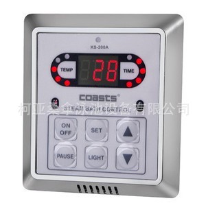 该机型内胆采用优质不锈钢材质,外壳采用电电解板喷塑,防腐耐用。配套的KS-200A控制面板,可以实现多种功能:具有LED数码显示即时温度和关机时间,同时具有温度和时间的设定自控;具有分段加热,加热和加水过程中不断气不喷水,具有长期稳定工作的特性,同时达到节能效果;具有故障自诊断显示功能;具有漏电保护.高温保护.过压保护.缺水保护和内胆压力安全保护功能;具有华氏温度和摄氏温度切换功能。电热管具有铁氟龙保护层;该机还配有最新开发的低噪音扩散型喷头,出蒸汽安全平缓,噪音小,外形美观;该机还采用柯亚公司自行研发的MOTOR自动排水阀,在关机时自动实现强力反冲洗排水,在蒸汽浴设备中,影响蒸汽机寿命的一个重要因素就是外界水质对容器元器件的腐蚀,而水中的杂质通常分为以不可溶解和可溶解两种方式存在,前者只需在进水管道上加安过滤装置就能消除,而后者很容易通过水沸腾分解后,在冷却过程中慢慢地沉淀吸附在容器和电加热元件上形成水垢,严重地影响电加热元件的散热而导致损坏。因此,关机冲洗和排水防止水垢形成对保护蒸汽机寿命显得尤为重要,特别是水质较差的硬水质地区和使用频繁的大功率商用场所。针对这种情况我公司在标准型蒸汽机上配套安装了我们自行研发的MOTOR排水阀,该阀在蒸汽机关机时自动开启,在阀体强劲(8kg)的开闭力量下实现定位畅通彻底的排水,杜绝水垢形成,大大提高了蒸汽机的使用寿命;为特殊情况的需要该机还设置有工作状态下的暂停功能,保持恢复后原设置状态不变;该机型还可以配置防水遥控器,对机器各功能实现远距离遥控,更方便客户使用;为满足各种安装环境的局限条件,此款机型外形尺寸较小,结构紧凑。该机型设计先进,选料优良,制造工艺精细,可长时间连续开机,经久耐用,质量稳定,安全可靠。由于功能齐全,适用性广泛,目前在市场上的占有率最大。