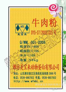 潍坊美宝来动物蛋白有限公司生产的牛肉粉采用屠宰厂副产品,(皮下碎肉、皮下脂肪、碎筋、血管、软骨等)。经蒸煮挤压后,控温灭菌、脱脂膨化而成。