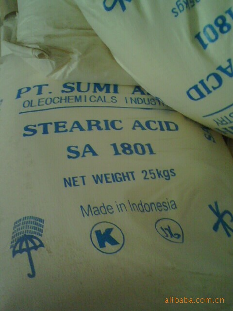 硬脂酸在橡胶的合成和加工过程中起重要作用。硬脂酸是天然胶、合成橡胶和胶乳中广泛应用的硫化活性剂,也可用作增塑剂和软化剂。在生产合成橡胶过程中需加硬脂酸作乳化剂,在制造泡沫橡胶时,硬脂酸可作起泡剂,硬脂酸还可用作橡胶制品的脱模剂。