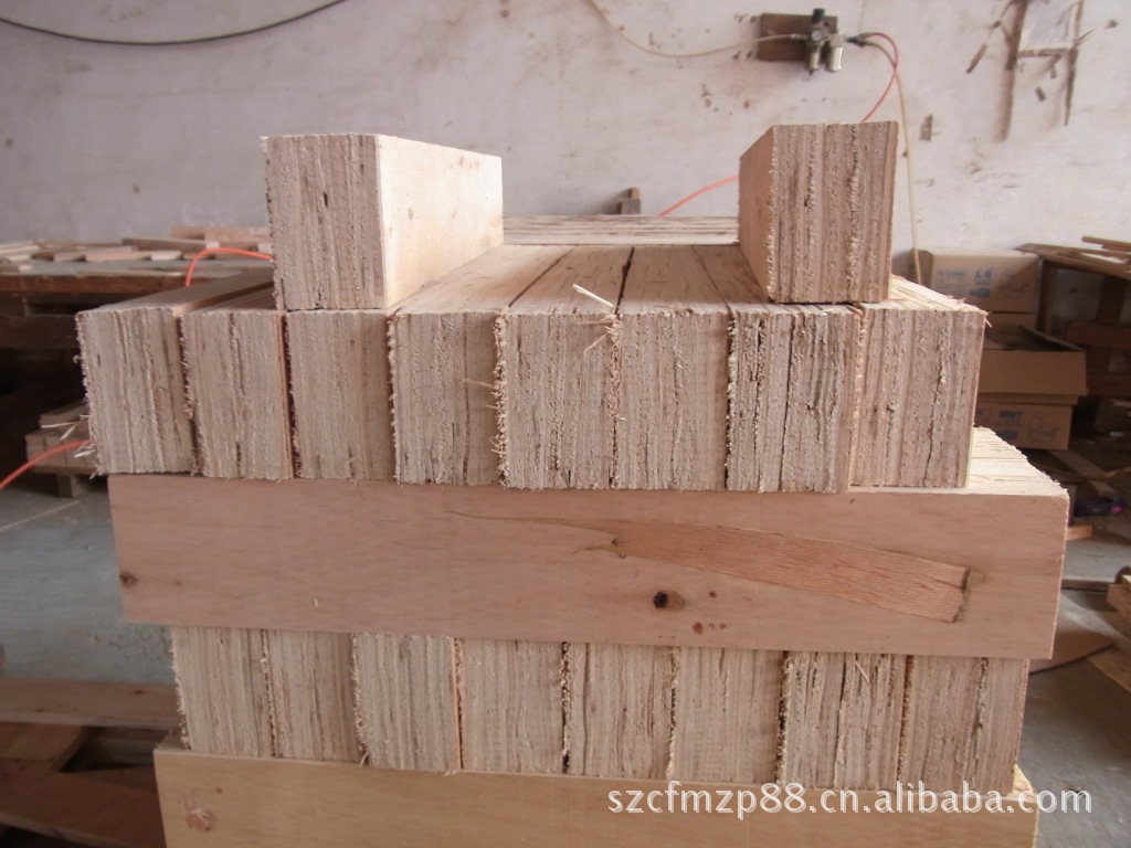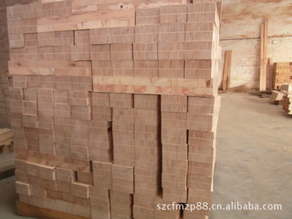先将松圆木经过筛选,腐烂,虫蛀被筛选出去.用刨片机按规格旋切成木片,晒干.把晒干的木片经筛选分类.,用环保胶水按规格经过胶机一片一片过胶后,一层一层地按力学要求组向粘贴好.再经冷压机预压成形.用热压机在110度的高温,高压下,经长时间的杀菌,消毒,牢固地粘压在一起而成形.