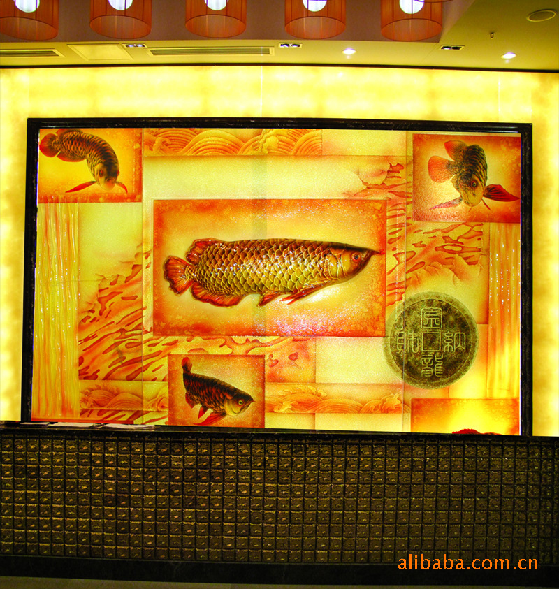 8-12mm厚白玻熔铸+雕刻彩绘 是用于做背景 装饰画等