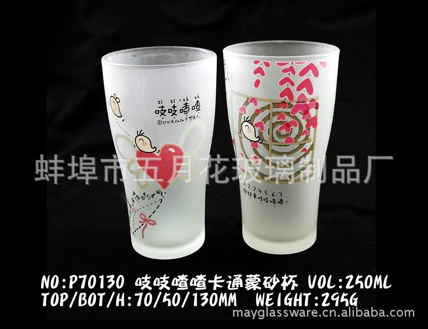 五月花玻璃专一致力于玻璃制品行业的发展与创新.专业生产各种型号的玻璃制品/及各类玻璃器皿的烤花、蒙砂、喷砂、印花、喷色、刻花等系列。可根据客户的不同需要开发生产!公司将以现代企业标准实行规范化管理,为您公司的宣传锦上添花,为国内外客户提供最优质的服务。欢迎您联系我们!