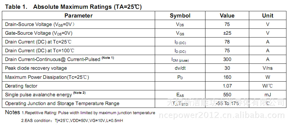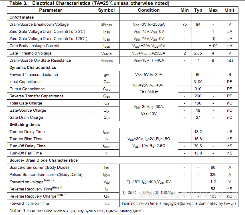Vds=75V;Id=78A ; Rds<8mΩ @Vgs=10V (Typ:7mΩ)