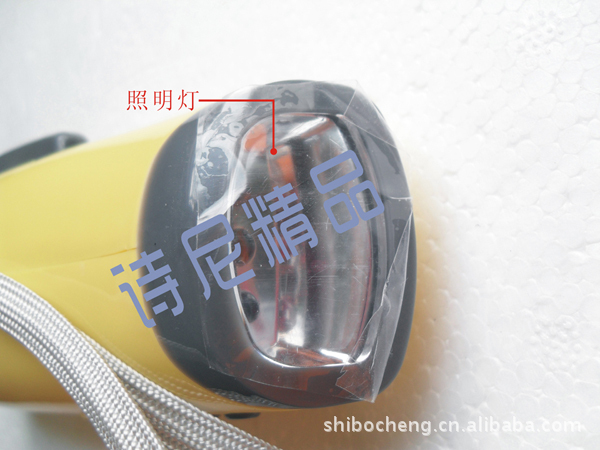 3、当在使用照明功能时,如果遇到电池耗尽,请将发电摇杆扳起,
