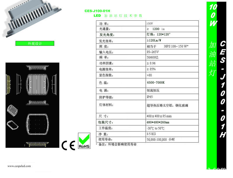 1、一体化弧形散热片及自洁灯壳,具有超强的空气对流散热功能,并能自动清洗。