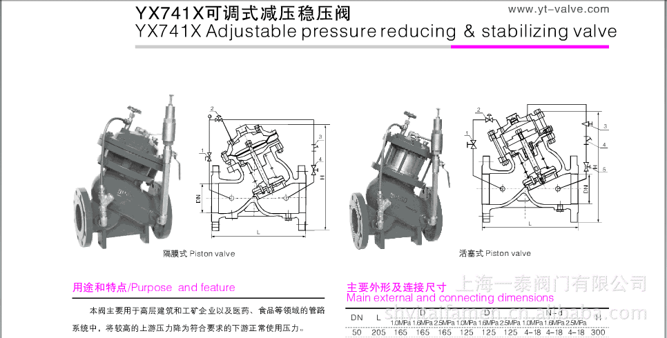YA741X可调式减压稳压阀是安装于高层建筑给排水系统管道上,将进口压力减至某一需要的出口压力的特种阀门。该阀门依靠本身能量使出口压力保持稳定在设定植,即出口压力不因进口压力及流量的变化而变化,并且阀门控制系统的进口处装有一个自清洁滤网,利用利用体特性,使比重较大、直径较大的悬浮颗粒不会进入控制系统,确保系统循环畅通无阻,使阀门能安全可靠地运行。系统动作平稳、强度高、使用寿命长。
