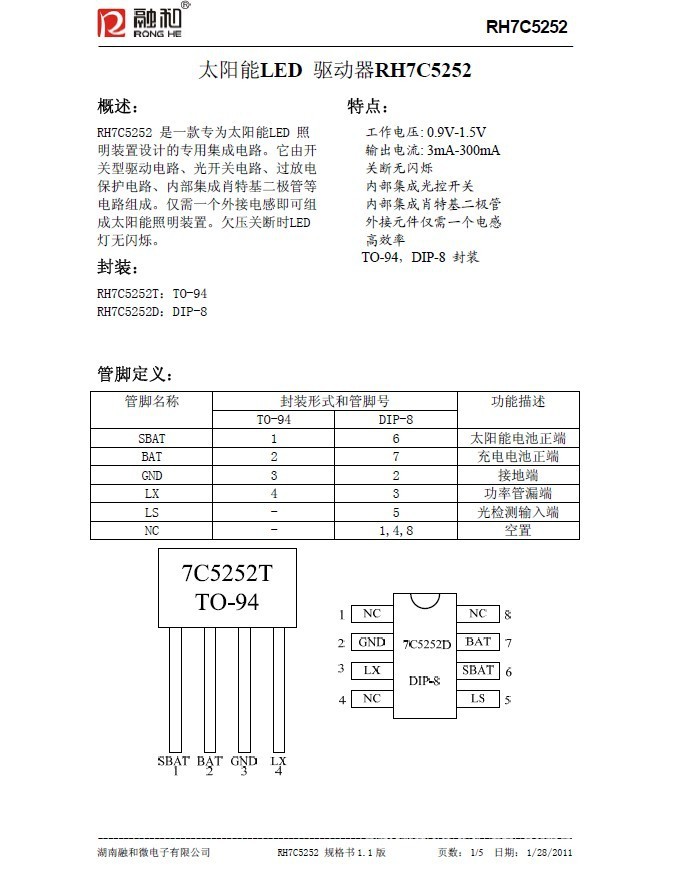 RH7C5252 太阳能LED驱动IC 集成电路IC 电源管理IC LED驱动IC