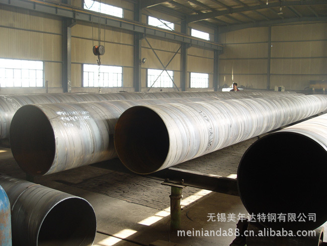无锡美年达特钢有限公司是一家生产销售各种螺旋钢管的企业。公司主要生产螺旋管,焊管,流体管线管、工程结构管等。公司现有三条双面埋弧焊螺旋钢管生产线,可生产加工口径219-2540mm,壁厚6-25.4mm各种材质的螺旋管。公司以质量立足,全面推行质量管理,通过了ISO9001国际质量管理体系认证,并配有先进的焊缝激光跟踪系统,X射线、超声波和静水压进行全线自动检测。螺旋钢管执行标准为:SY/T5037、SY/T5040、GB/T9711.1、API spec5L;材质为:Q235、Q345、L245、L290、L360、X42-X80等,也可按客户需要自动选材。定尺长度通常为12000mm,也可生产不同长度的螺旋管、焊管。本公司对产品质量和各项服务恪守合同承诺,并愿与新老客户精诚合作,共创未来