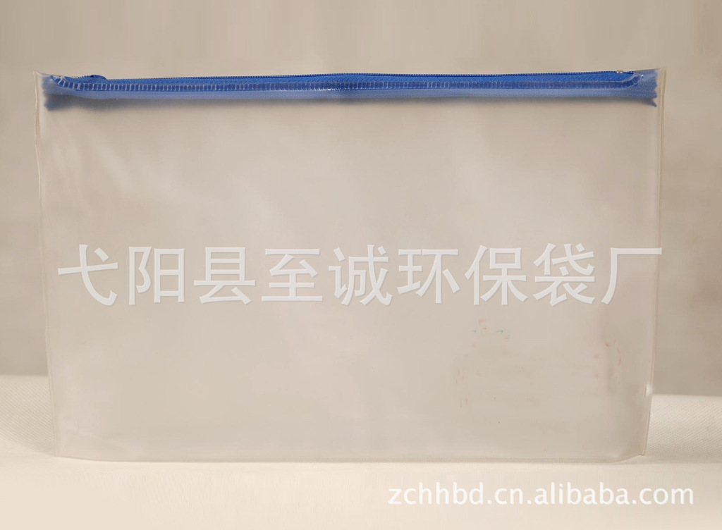 车缝PVC袋下料印花好后,直接用平车或高车等缝纫机器车线缝纫而成,一般会上有尼龙拉链等配件。