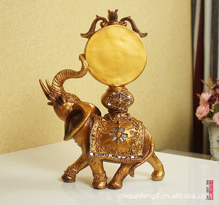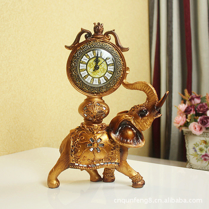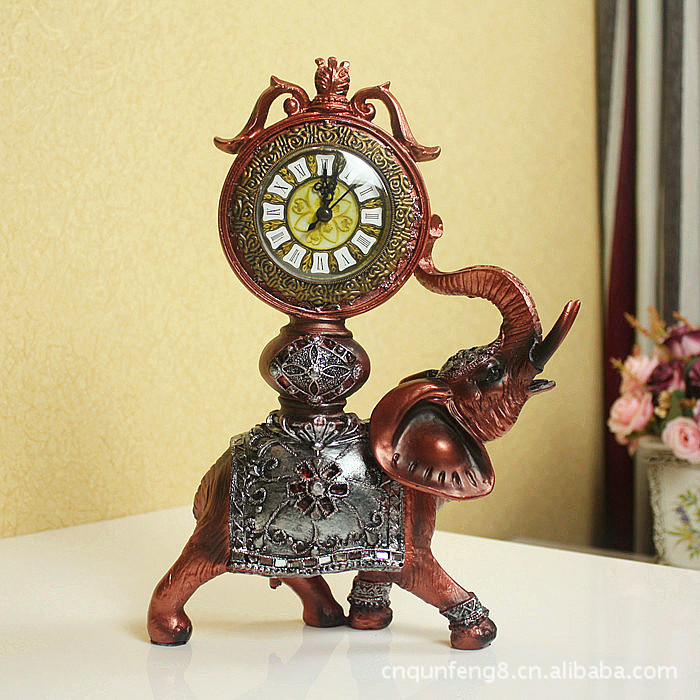 【产品材质】: 东南亚风格 树脂工艺礼品 吉祥大象座钟 装饰摆件