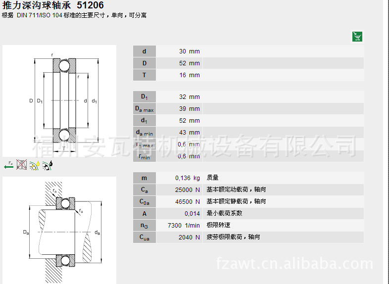 只适用于承受一面轴向负荷、转速较低的机件上,例如起重机吊钩、立式水泵、立式离心机、千斤顶、低速减速器等。 |