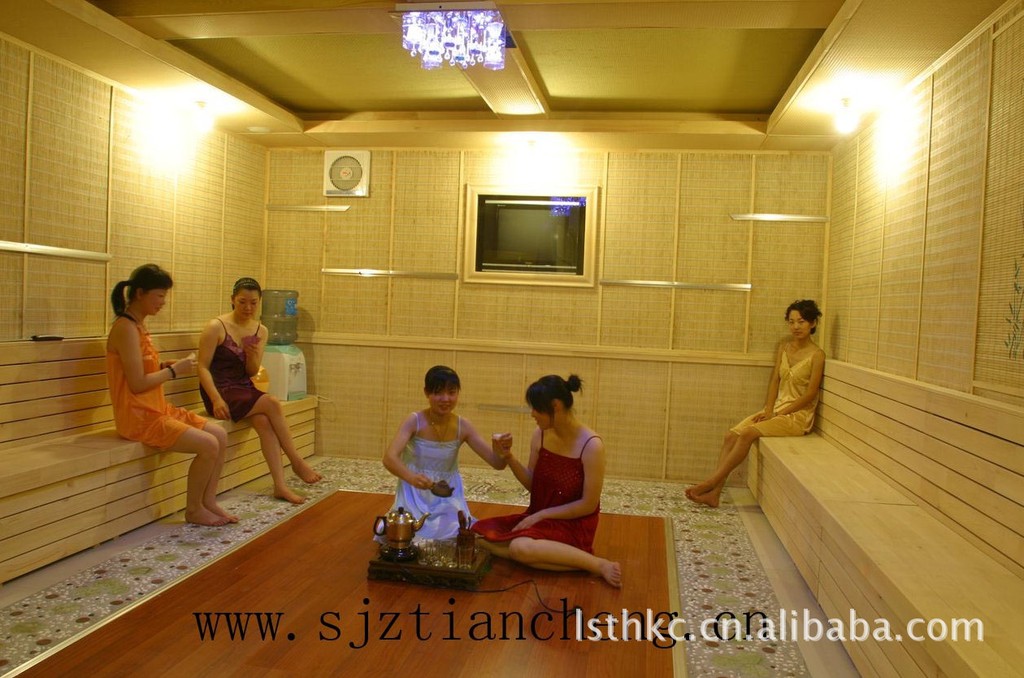 汗蒸的好处 汗蒸房的工作原理是通过加热汗蒸房内部功能材料电气石使其产生红外线、负离子、生物电三种形式作