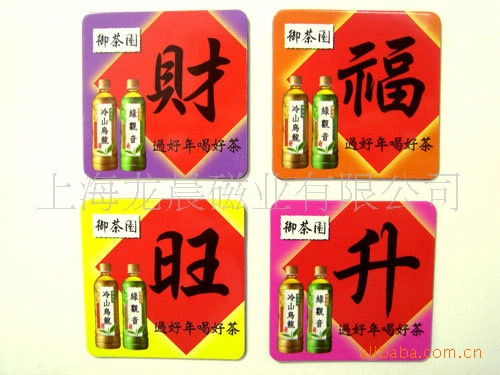 1)磁性冰箱贴:采用下面软磁+表面铜版纸彩色印刷+PP复光膜,制作而成。