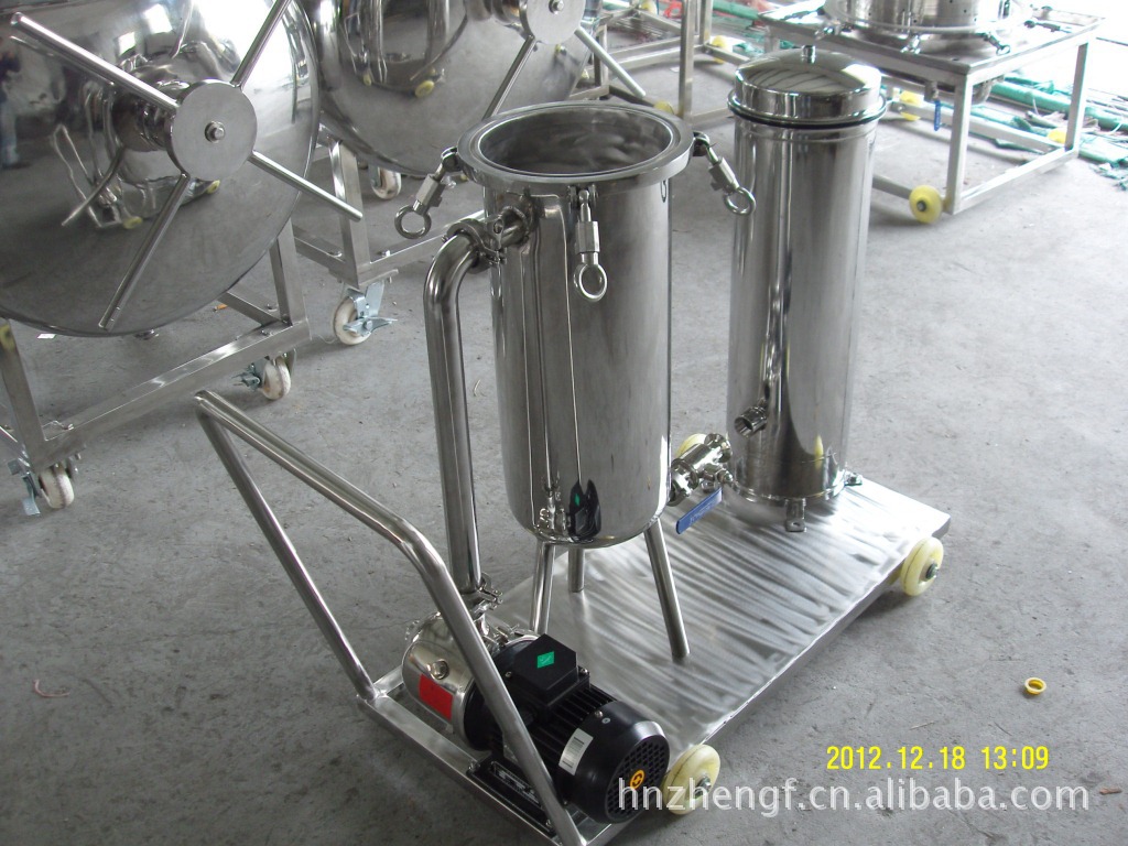 | 钛棒过滤器使用的是钛粉末烧结滤芯,一般用于粗滤或中间过滤。此滤芯具有精度高,耐高温,耐腐蚀,机械强度高等优点,在医药行业广泛应用,外壳材料为316L或304不锈钢。符合GMP标准。 - 用途 本 过滤器采用 304或316L 不锈钢材料作外壳,内部滤芯为钛管,具有耐高温、高压、强酸、强碱、耐腐蚀,滤芯可反复再生使用等特点,是采用粉末冶金方法将钛金属粉末未通过高温烧结的 方法加工制成的空心滤管,它广泛地应用于食品、饮料、医药、化工等行业的液固分离,在制药行业尤其适用于大输液和针剂生产线中的脱碳过滤。此系列产品具有 结构紧凑造型美观按 GMP 标准生产,管件连接采用国际标准快装式连接,拆装清洗方便。 二 使用注意事项 1 避免划伤碰撞,灰尘及油污。 2 在使用中其工作压力不应超过额定工作压力。 3 正常使用时,至少有 3—5 分钟的低压启动时间,其相对压差应控制在 0.5Mpa 以下,然后将工作工作压力逐渐调到正常需要(最高压力不超过 0.4Mpa)。 4 本产品工作运行到一定周期后,可能由于过滤元件堵塞,致使压力升高流量降低,需要反冲或反洗再生。再生周期视额定的压力和流量而定。 清洗方法 : 钛棒滤芯在使用一段时间以后,将产生一定程度的堵塞,表现 流量减少,过滤前端压力增高,如:从0.22mPa以下升高到0.3mPa以上,这时就要对滤芯进行清洗,清洗方法一般有以下几种: 1 对于新使用的滤芯,一般采用清水反冲,气体反吹的方法来 进行清洗,即用稍大于工作压力(如;0.3mPa)的清水反方 向注水清洗。反冲时间约为1-3分钟即可。 2 对于多次反冲洗后,过滤效果不明显回升的时候,可用5%以下的盐酸溶液,或8%以下的硫酸溶液,或10%以下的NaoH溶液在常温下浸泡,再用清水洗净。 具体选择用酸洗或碱洗,应视过滤液中杂质容易溶于酸或碱来选择。 本过滤器采用 SUS316L 不锈钢作外壳 型号 | 外型尺寸 | 理论孔径 | 理论流量 | T — 3 型 | 280mm×850mm | 0.1um — 30um | 1.0T | T — 5 型 | 280mm×850mm | 0.1um — 30um | 2.0T | T — 7 型 | 440mm×850mm | 0.1um — 30um | 3.0T | T — 9 型 | 440mm×850mm | 0.1um — 30um | 3.5T | T — 12 型 | 540mm×850mm | 0.1um — 30um | 4.5T | T — 15 型 | 540mm×850mm | 0.1um — 30um | 6.0T | T — 17 型 | 620mm×850mm | 0.1um — 30um | 7.0T | 微孔钛管规格 60mm×300mm ,特殊规格可以定制。插口螺纹式,222型 | 226型插口,备注:浓度较高产品过滤需夹层加温提高过滤速度。 |